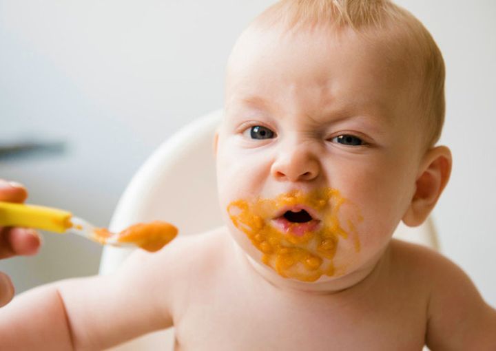 * Рефлекс виштовхування язиком. У малюка цей рефлекс зникає ближче до 6 місяців, що дозволяє йому ковтати тверду їжу.