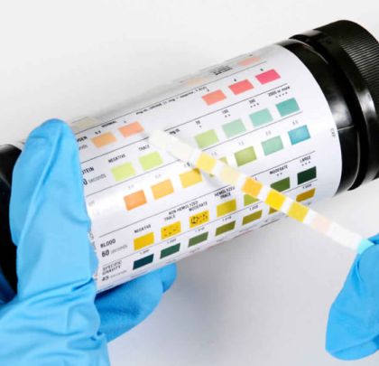 Це найпоширеніший спосіб діагностики ацетонемії. Для цього зазвичай використовують тест-смужки, які занурюються в сечу. Тест-смужки містять спеціальні реагенти, які змінюють колір в присутності ацетону. Такий аналіз може бути проведений вдома під наглядом батьків.