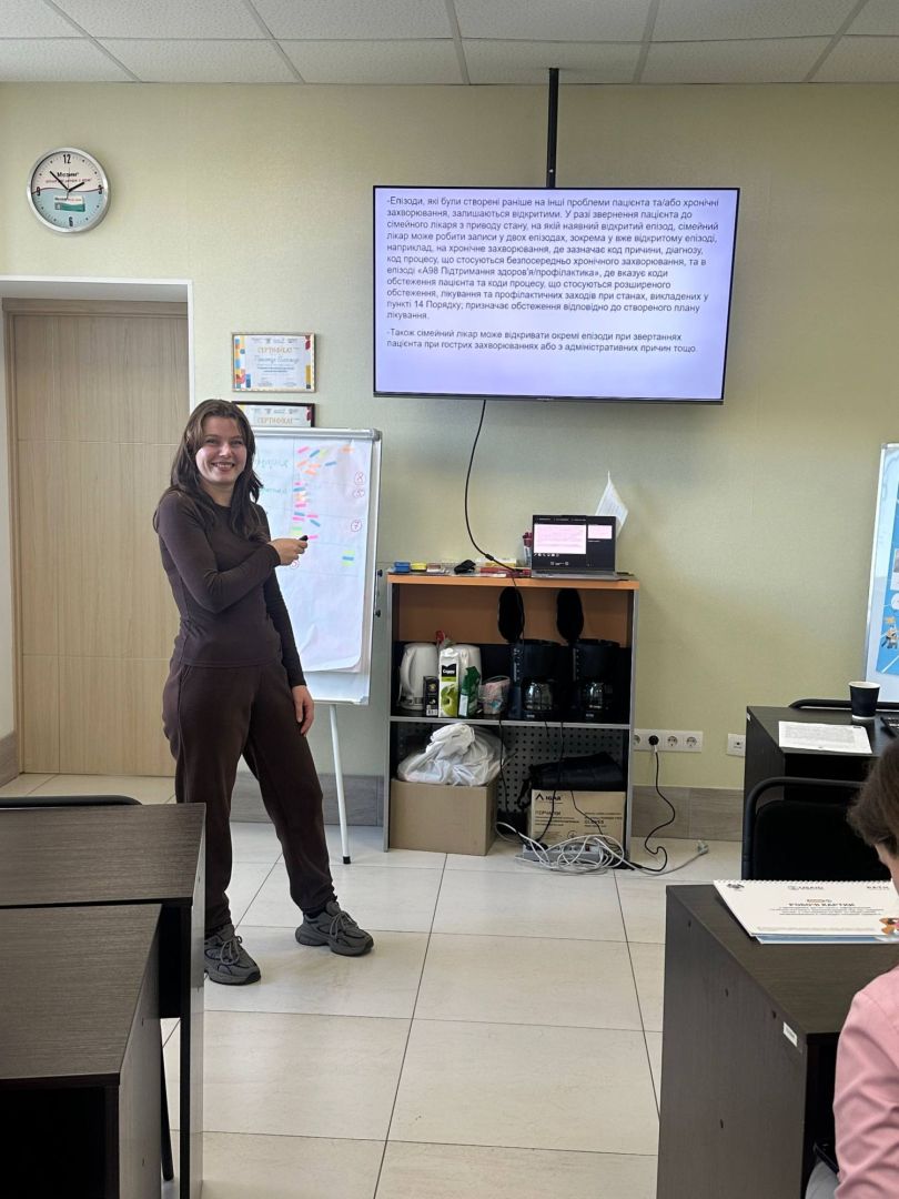 Вона детально пояснила, які саме види допомоги може надати сімейний лікар — від скринінгу ПТСР, хронічного болю та гіпертонії до участі в реабілітаційних програмах. Також колеги отримали практичні рекомендації щодо ведення медичної документації у ЕСОЗ.